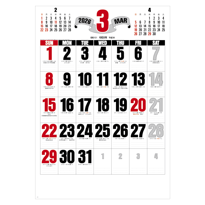 デスクやテーブル周りなど身近に置いて使うのにちょうどいいサイズの卓上カレンダー。