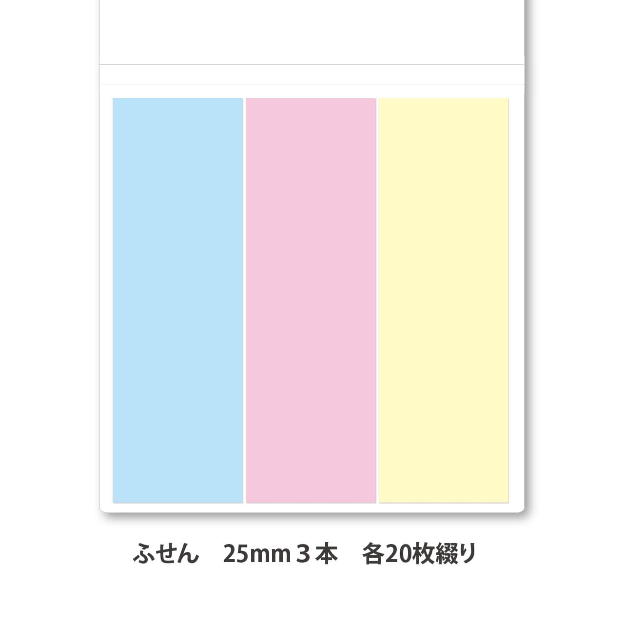 サイズ | 付箋カバーサイズ:80×80×2mm(2つ折り時) 付箋サイズ:25×75mm 3本(ブルー・ピンク・イエロー) 各20枚 |
