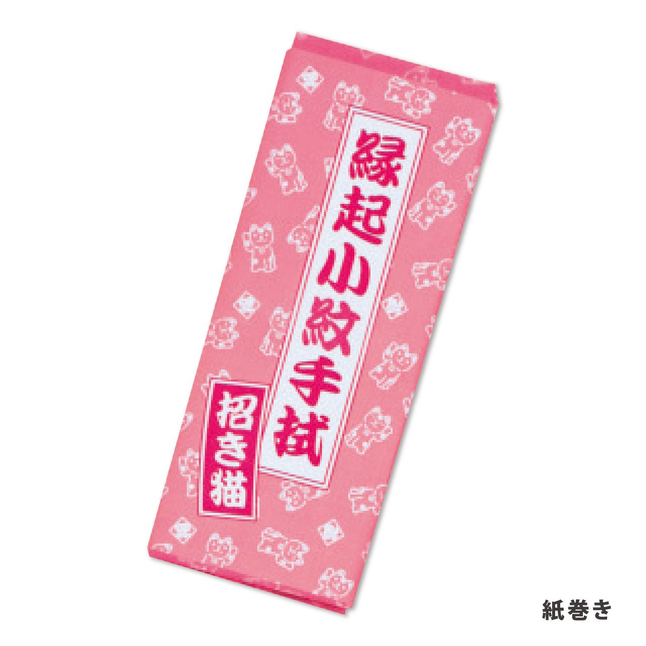 毎年人気の縁起グッズ「縁起小紋手拭(招き猫)」。ピンクの生地にたくさんの招き猫が並ぶ、日本製のかわいい手ぬぐいです。明るく親しみやすいデザインで、福を呼び込む縁起物として年始の贈り物や販促品にぴったりです。