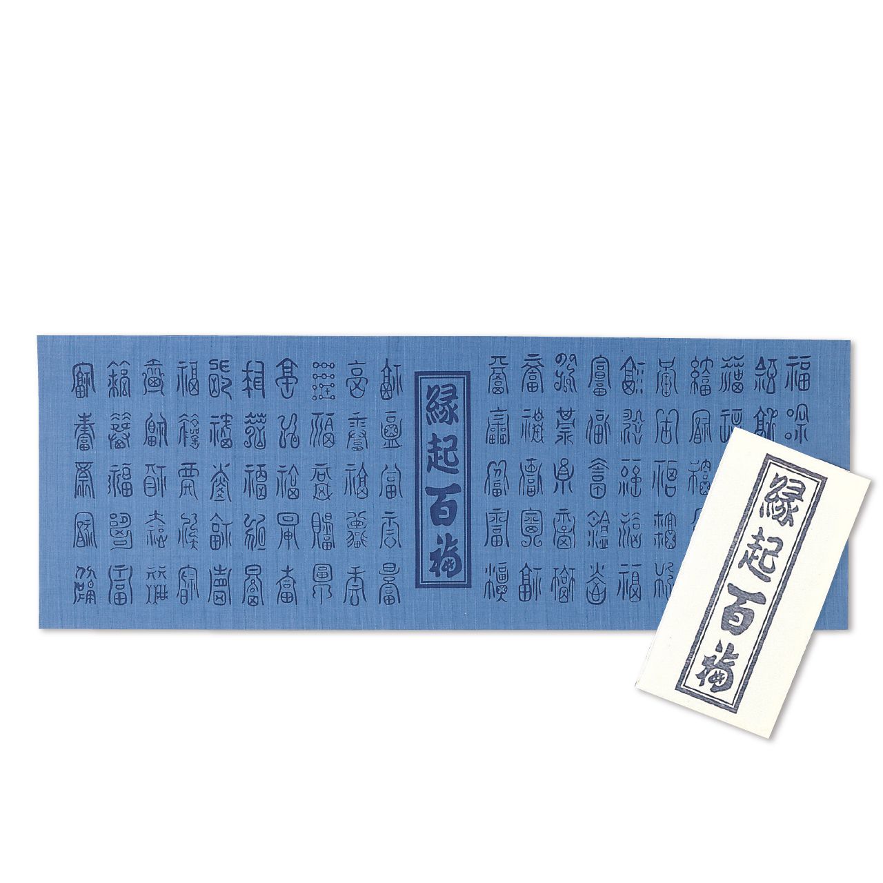 毎年人気の縁起グッズ「縁起百福手拭」。青色の生地に「百福図」がずらりと並ぶ、日本製の手ぬぐいです。福が詰まった華やかなデザインは、見るだけで運気が上がる一枚。年始の贈り物や販促品にぴったりの縁起物です。